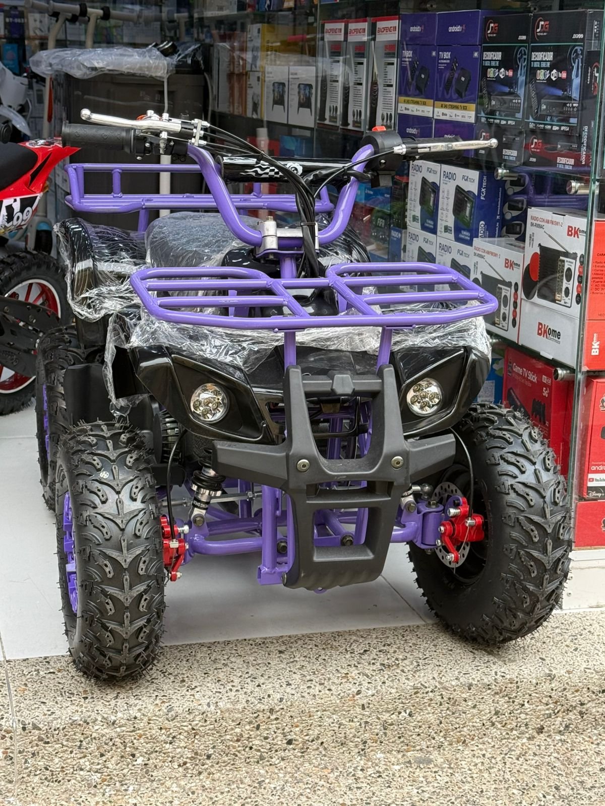 CUATRIMOTO TIPO GRISLY CON MOTOR 60CC Y ENCENDIDO ELECTRÓNICO. CHASIS ROBUSTO, SUSPENSIÓN PARA TERRENOS LIGEROS Y SISTEMAS DE SEGURIDAD PARA USO RECREATIVO. IDEAL PARA REGALOS DE TEMPORADA.