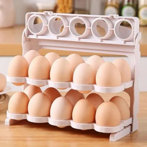 ORGANIZADOR PLÁSTICO CON CAPACIDAD PARA 30 HUEVOS. DISEÑO APILABLE, RESISTENTE A LA HUMEDAD Y FÁCIL DE LIMPIAR. OPTIMIZA ESPACIO EN LA NEVERA O ALACENA. IDEAL PARA HOGAR Y TIENDAS PEQUEÑAS.