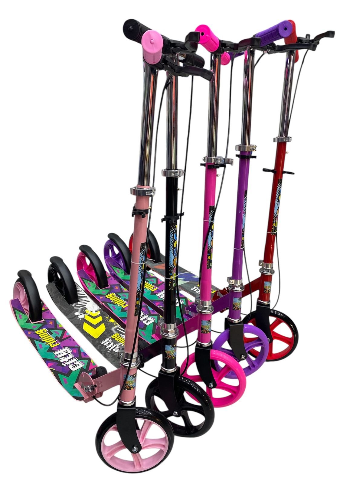 PATINETA DE RIN GRANDE PARA MAYOR ESTABILIDAD Y CONTROL. SUPERFICIE ANTIDESLIZANTE, EJES REFORZADOS Y RUEDAS DE ALTO RENDIMIENTO. COLORES: ROSADO, NEGRO, FUCSIA, MORADO, ROJO, AZUL.