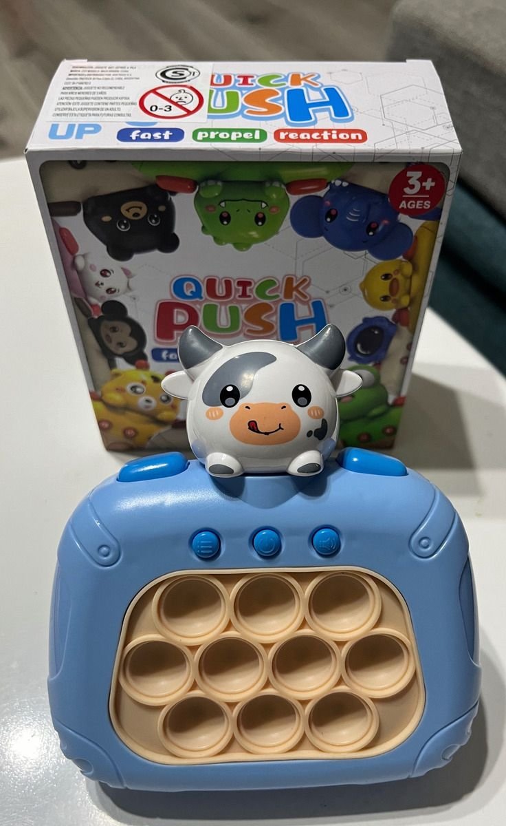 El Quick Push es un juguete electrónico tipo Pop It que combina reflejos, luces y sonidos. Su divertido diseño de animalito y sus modos de juego estimulan la concentración, velocidad y coordinación de los niños.