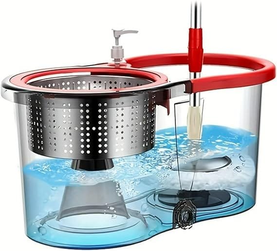 Mantén tus pisos impecables con el Trapero Mopa 360°, diseñado para limpiar de forma eficiente y cómoda. Incluye un balde con sistema de escurrido de acero inoxidable, que permite secar la mopa rápidamente sin ensuciarte las manos.